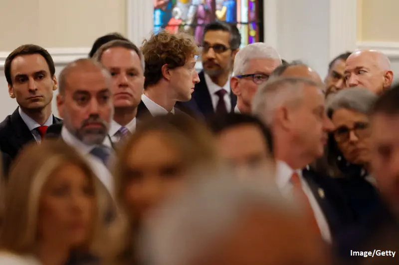 ஆப்பிள் நிறுவன சிஇஓ டிம் குக், எக்ஸ் தள உரிமையாளர் எலான் மஸ்க், அமேஜான் நிறுவனத்தின் ஜெப் பெஜாஸ், கூகுள் சிஇஓ சுந்தர் பிச்சை ஆகியோர் பதவியேற்பு விழாவில் பங்கேற்றுள்ளனர்.