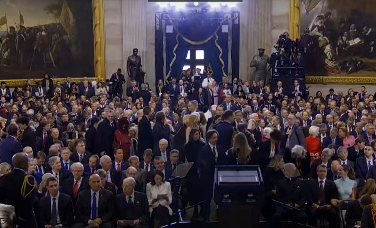 அமெரிக்க கேபிடல் அரங்கில் பதவியேற்பு விழா சற்று நேரத்தில் நடைபெறவுள்ளது. முன்னாள் அதிபர்கள், பல்வேறு தலைவர்கள், டெக் துறை தலைவர்கள் கேபிடலில் குழுமியுள்ளனர். சிறிது நேரத்தில் டிரம்ப் அதிபராகப் பதவியேற்கவுள்ளார்.