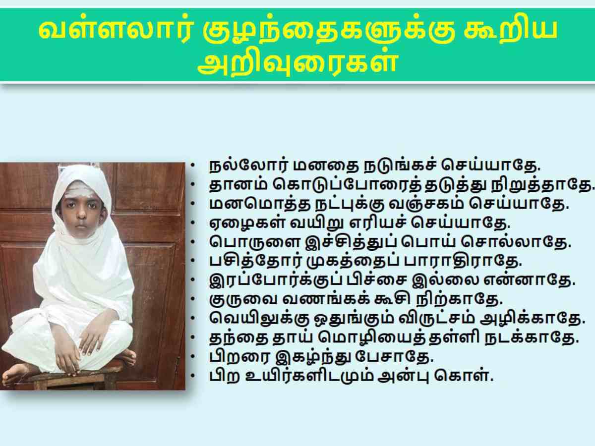 வள்ளலார் குழந்தைகளுக்கு கூறிய அறிவுரைகள் :