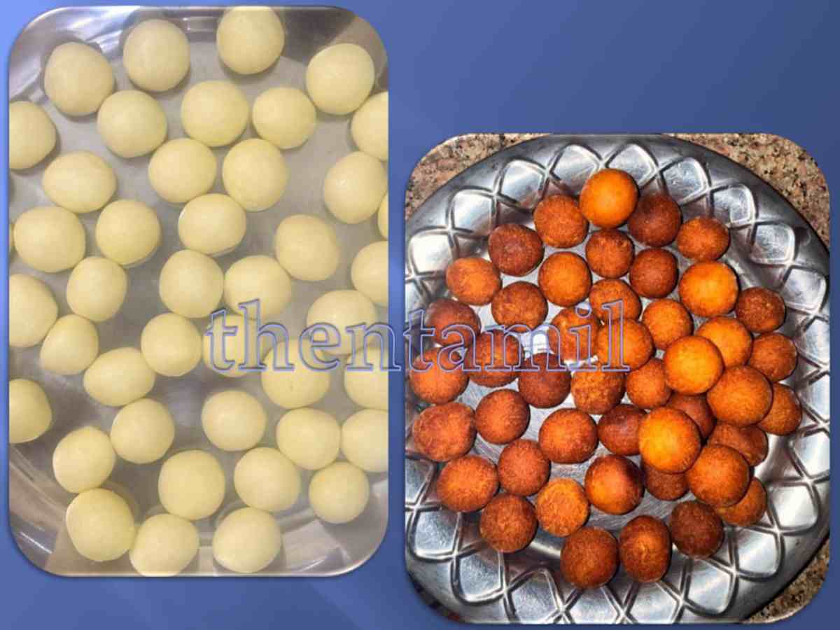 3. உருண்டை வெடிப்பு இல்லாமல் உருட்ட வேண்டும். மேலே பிளவு இருந்தால் பொரிக்கும் போது உடைந்து விடும்.