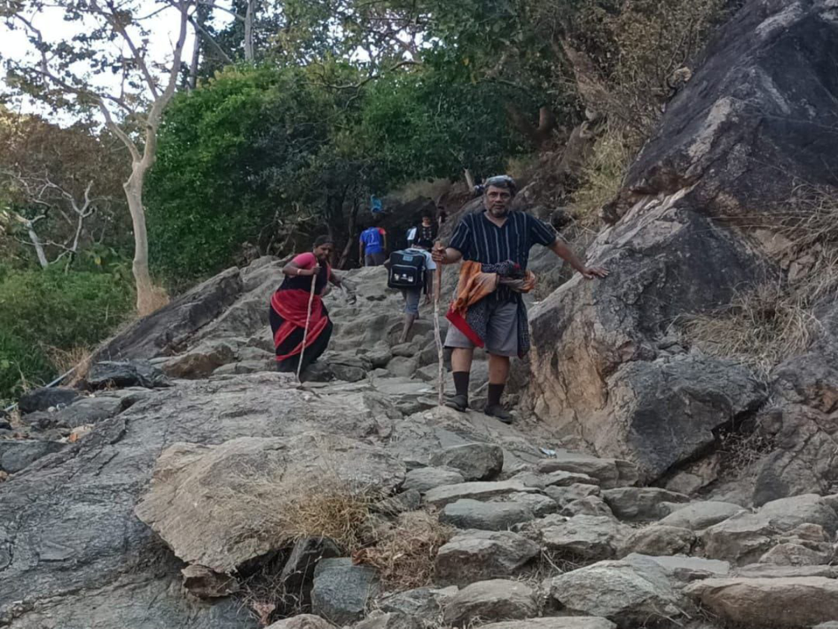 உள்ளே நுழைந்து சற்று தூரம் சென்றபின் ஆசீர்வாத விநாயகர் நம்மை மலையேற்றத்திற்கு ஆசீர்வாதம் செய்து வழி அனுப்புவார்.அவரின் அருகிலேயே தங்ககாளியம்மன் கோவில் அதன் முன்புறம் ஒரு சிறிய பைரவர் சிலை இவர்கள் அனைவரையும் தரிசித்து விட்டு சிறு பாறைகளில் ஏறினால் சிலு சிலு காற்றுடன் ஓடைகளில் சல சல என சத்தத்துடன் தண்ணீர் செல்வதை ரம்மியமாக ரசித்துக்கொண்டே சென்றால் பேச்சியம்மனையும் ,கருப்பசாமியையும் தரிசித்து விட்டு மன தைரியத்துடன் மலை ஏற ஆரம்பிக்கலாம்.