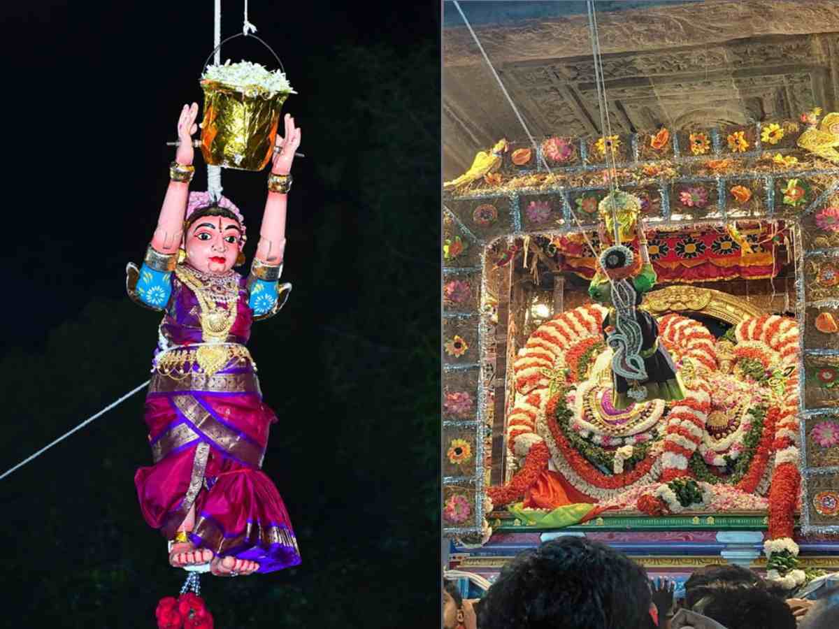 வசந்த உற்சவ பத்து நாட்களுமே உற்சவமூர்த்தி மீது பொம்மை பூ போடும் நிகழ்வு (இயந்திரம் மூலம் ) நடைபெறுகிறது. இந்த அழகான நிகழ்வை காண கண் கோடி வேண்டும். ஒவ்வொரு நாளும் பொம்மைக்கு ஒவ்வொரு விதமான அலங்காரம் செய்யப்படும். இந்த அழகான நிகழ்வை காண தினமும் ஆயிரக்கணக்கான பக்தர்கள் கோவிலில் குவிந்த வண்ணம் உள்ளனர்.