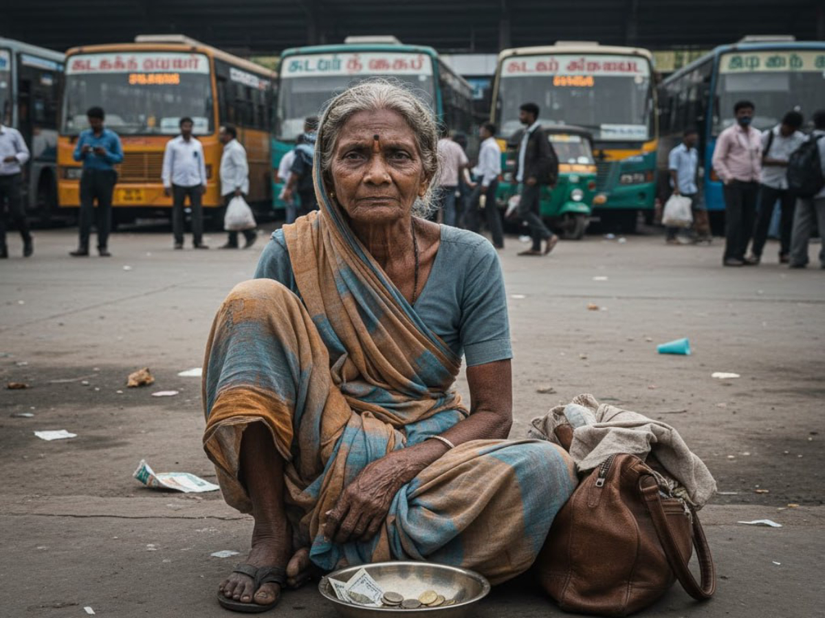 நான் சென்னையில் இருந்து, ஒரு திருமணத்திற்காக காரைக்குடி சென்றேன். அப்போது காரைக்குடி பேருந்து நிலையத்தில் டீ குடிக்க பத்து நிமிடம் காத்திருந்தேன். அங்கு சில பிச்சை எடுக்கும் தாய்மார்களை பார்த்தேன் . ஒரு பிச்சைக்காரி , கை நீட்டியதால் நானும் ஐந்து ரூபாய் நாணயத்தை எடுத்துக் கொடுத்தேன்.