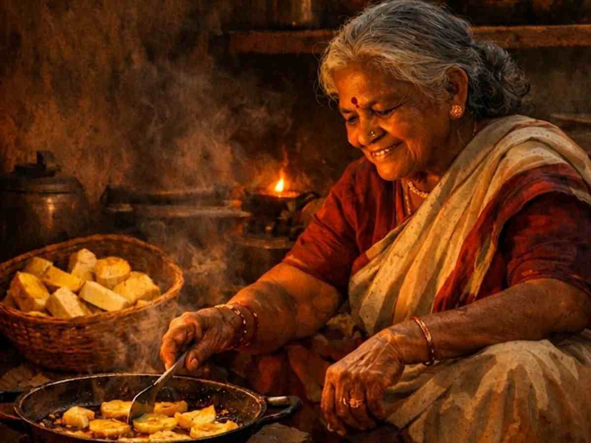 warm with the faint curl of sambrani—